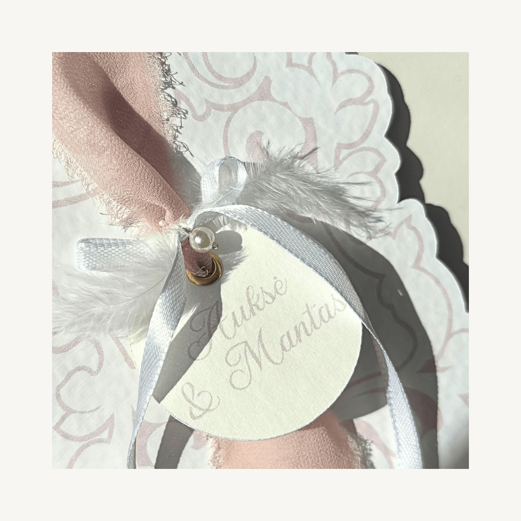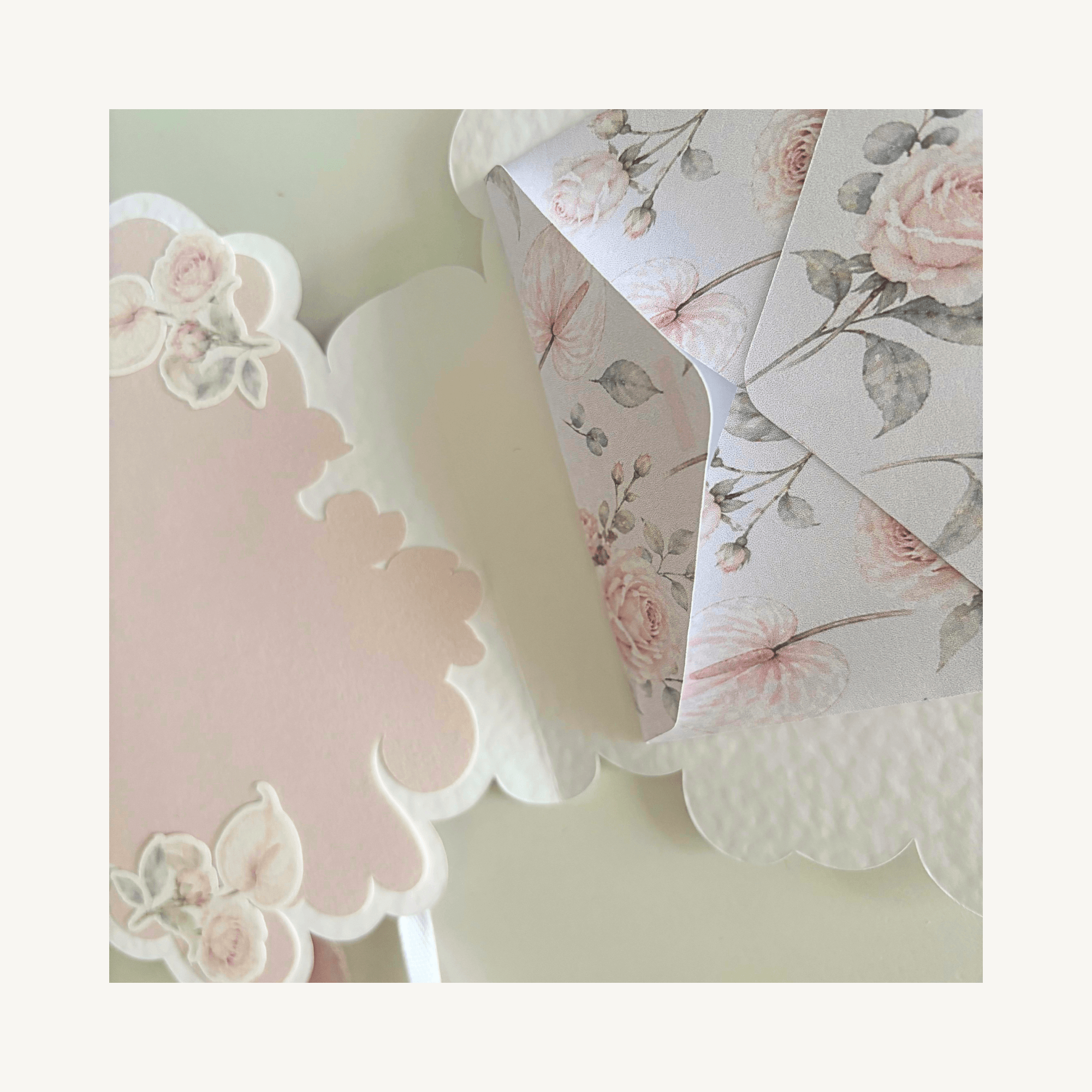 Atvirutė sukurta naudojant pastelinius atspalvius, vintažinio stiliaus gėlių motyvus ir dekoratyvines formas.  Ji puikiai tiks tiek vestuvėms, tiek krikštynoms ir kitoms įvairioms progoms.