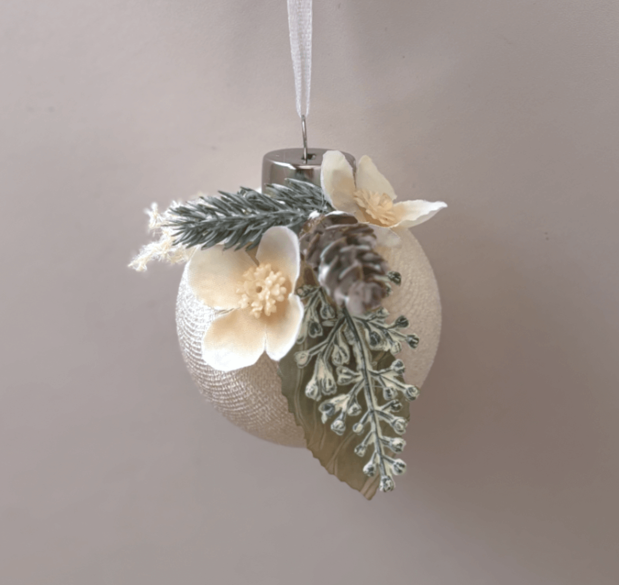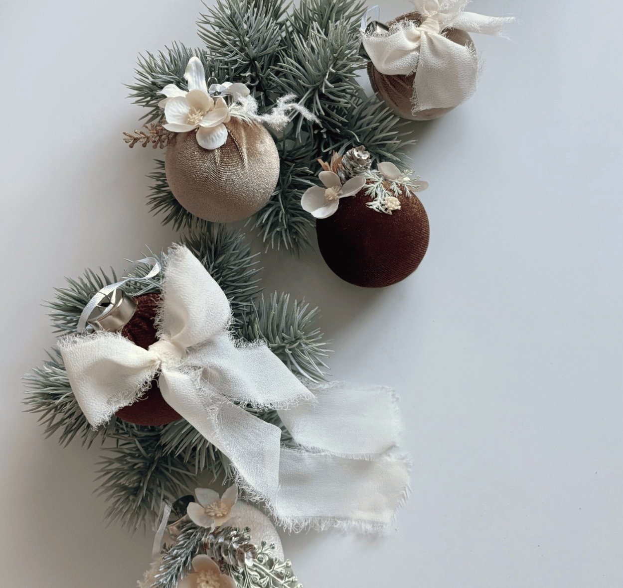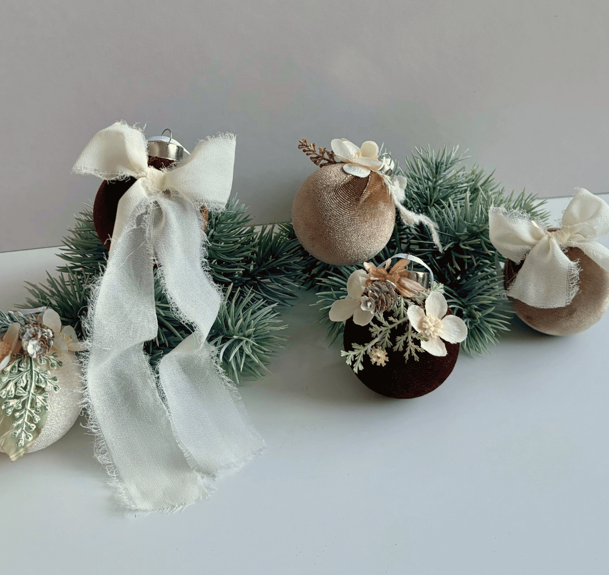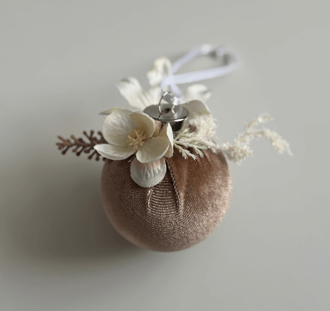 Atraskite šventinę jaukumo magiją su šiais 5 vnt. veliūriniais eglutės žaisliukais, dekoruotais dirbtinėmis augalų ir gamtos įkvėptomis detalėmis. Kiekvienas žaisliukas yra apvalios formos, 6 cm skersmens, tad tinka tiek didelėms, tiek mažoms eglutėms, derinant su kitais žaisliukais ar įvairioms kompozicijoms.