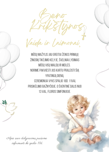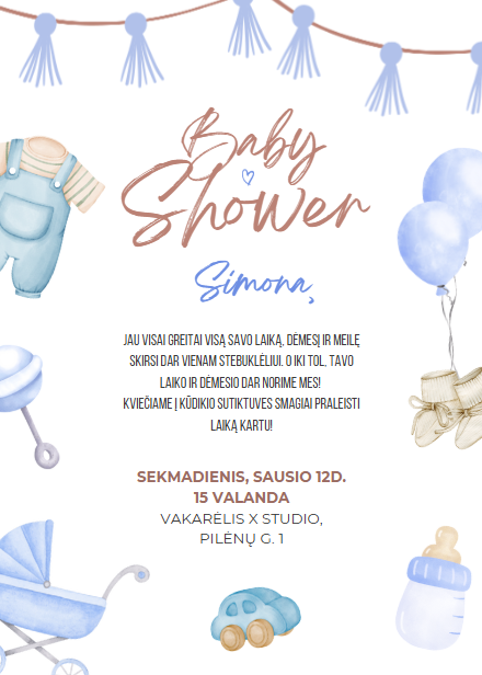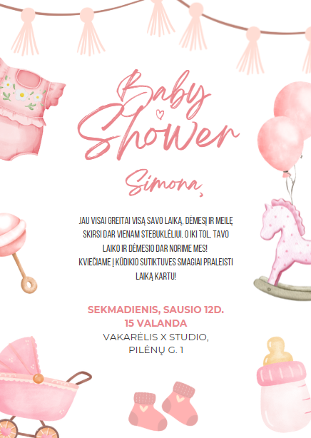 Pakvietimas į mergvakarį, babyshower ar krikštynas
